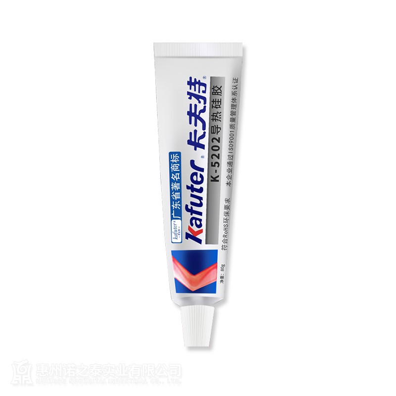 卡夫特K-5202導熱硅膠既有粘接作用,又有良好的導熱(散熱)性。本導熱硅膠是一種經過補強的中性有機硅彈性膠,膠固化后有良好的耐高低變化性能,長期使用不會脫落,不會產生接觸縫隙降低散熱效果;因為有了補強,本導熱硅膠有較高的粘接強度,剪切強度≥18公斤/平方厘米,剝離強度≥6公斤/平方厘米。具有的耐高低溫性能。本導熱硅膠的使用溫度范圍為-60~280℃;本導熱硅膠是一種單組分室溫固化膠,用100毫升金屬軟管包裝使用非常方便。