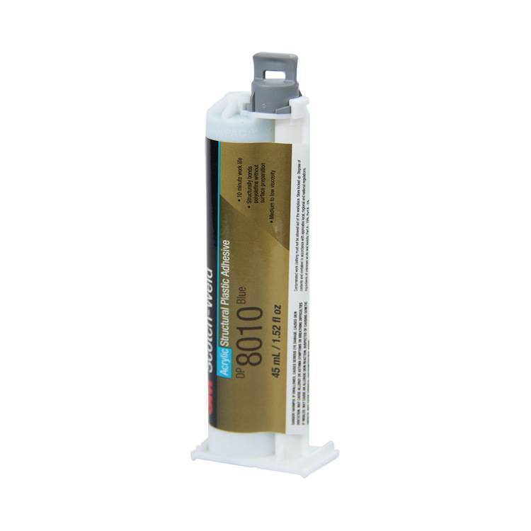 結(jié)構(gòu)性粘接可以在無特殊表面處理(化學蝕刻、等離子體、火焰或電暈處理、底漆)的基材上實現(xiàn)粘接。只需用異丙醇擦拭表面清除脫模劑、灰塵等即可。3M? Scotch Weld? DP8010藍色結(jié)構(gòu)塑料膠粘劑也可粘接金屬、陶瓷、木材和大多數(shù)其他塑料。固化時略有柔性。我們還將這種膠粘劑與8密耳厚的間隔珠進行配制,用于粘接線間距。