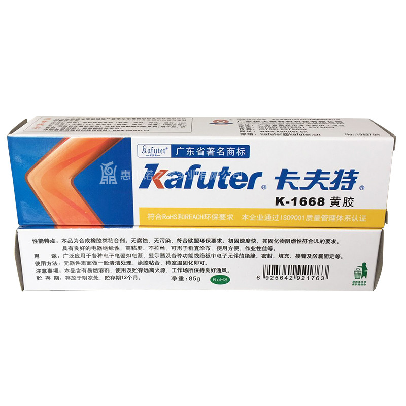 1.卡夫特黃膠K-1668.適合電子、電器產(chǎn)品中元器件的定位和固定,符合歐盟環(huán)保要求。